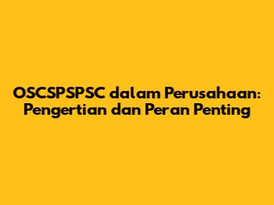 OSCSPSPSC Dalam Perusahaan: Pengertian Dan Peran Penting