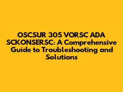 OSCSUR 305 VORSC ADA SCKONSERSC: Expert Guide