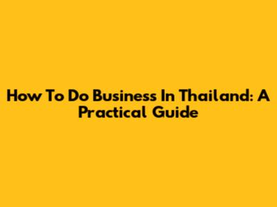 How To Do Business In Thailand: A Practical Guide