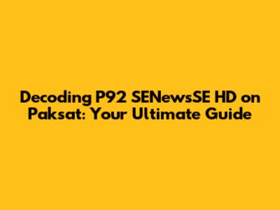 Decoding P92 SENewsSE HD on Paksat: Your Ultimate Guide