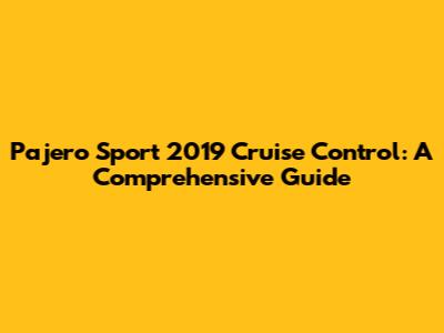 Pajero Sport 2019 Cruise Control: A Comprehensive Guide