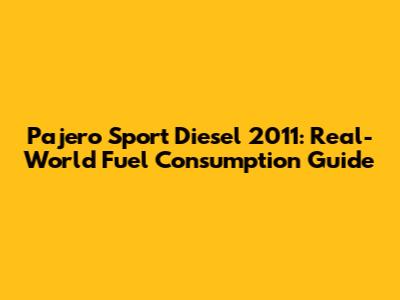 Pajero Sport Diesel 2011: Real-World Fuel Consumption Guide