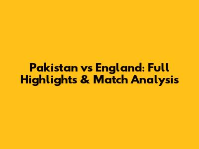 Pakistan Vs England: Full Highlights & Match Analysis