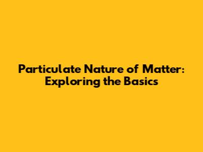 Particulate Nature Of Matter: Exploring The Basics