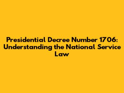 Hey guys! Ever heard of Presidential Decree No. 1706? It's a pretty significant piece of legislation in the Philippines, also known as the National Service Law. Let’s break it down in simple terms, so we all understand what it's about. Understanding Presidential Decree No. 1706 is crucial for every Filipino citizen, as it outlines the duties and responsibilities related to national service. This law was enacted to ensure that all citizens contribute to the defense and development of the nation. So, what exactly does it entail?