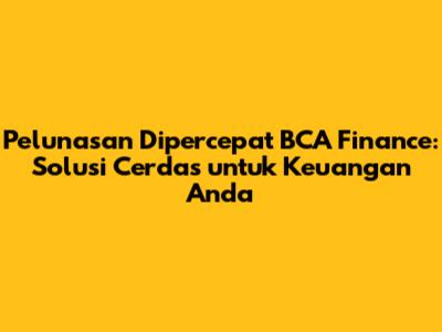 Pelunasan Dipercepat BCA Finance: Solusi Cerdas