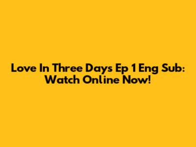 Love In Three Days Ep 1 Eng Sub: Watch Online Now!