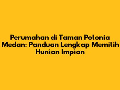 Perumahan Terbaik Di Taman Polonia Medan: Panduan Lengkap