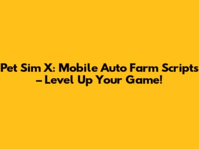 Pet Sim X: Mobile Auto Farm Scripts – Level Up Your Game!