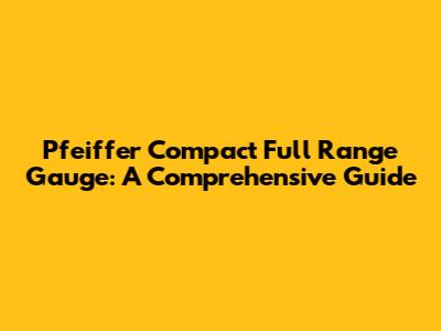 Pfeiffer Compact Full Range Gauge: Comprehensive Guide