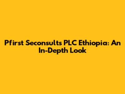 Pfirst Seconsults PLC In Ethiopia: A Comprehensive Overview