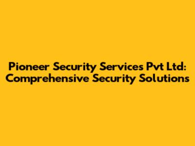 Pioneer Security Services Pvt Ltd: Comprehensive Security Solutions