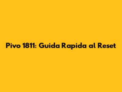 Pivo 1811: Guida Rapida Al Reset