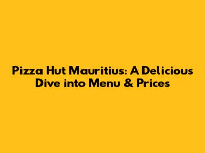 Pizza Hut Mauritius: Menu & Prices