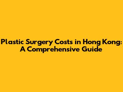 Plastic Surgery Costs In Hong Kong: A Comprehensive Guide