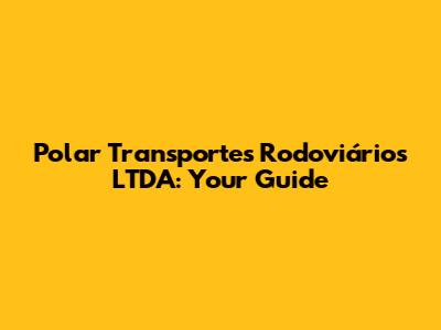 Polar Transportes Rodoviários LTDA: Your Guide