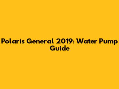 Understanding the Polaris General 2019 Water Pump
