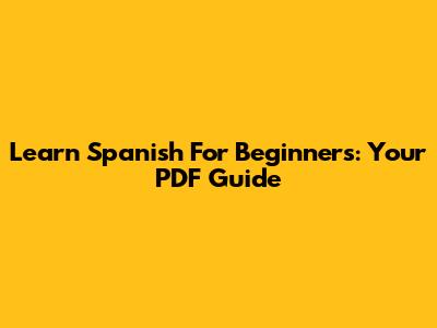 Learn Spanish For Beginners: Your PDF Guide