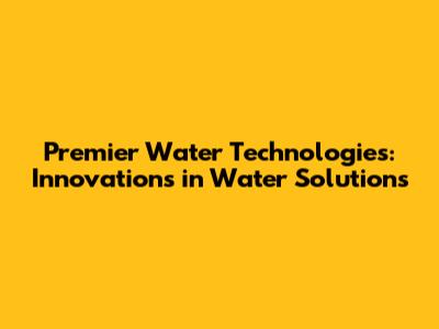 Premier Water Technologies: Innovations In Water Solutions