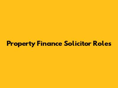 Property Finance Solicitor Roles