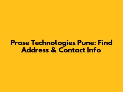 Prose Technologies Pune: Find Address & Contact Info