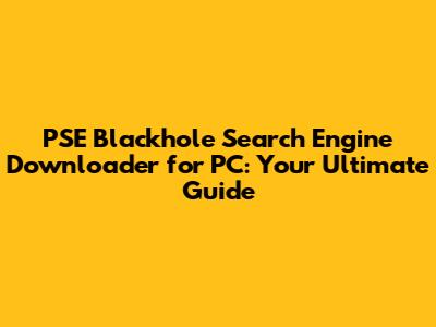 PSE Blackhole Search Engine Downloader For PC: Your Guide