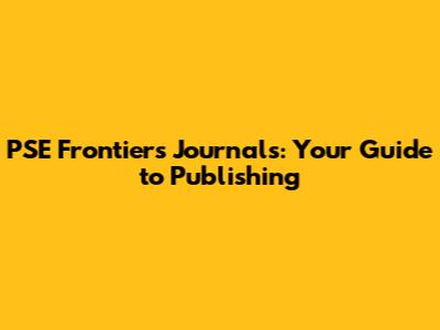 PSE Frontiers Journals: Your Guide To Publishing