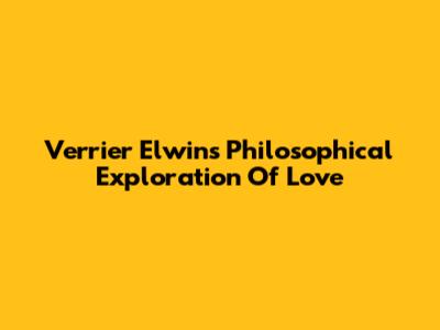 Verrier Elwin's Philosophical Exploration Of Love