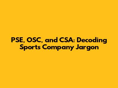 PSE, OSC, And CSA: Decoding Sports Company Jargon