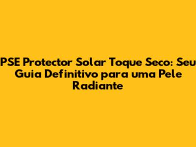 PSE Protector Solar Toque Seco: Guia Completa Para Uma Pele Perfeita