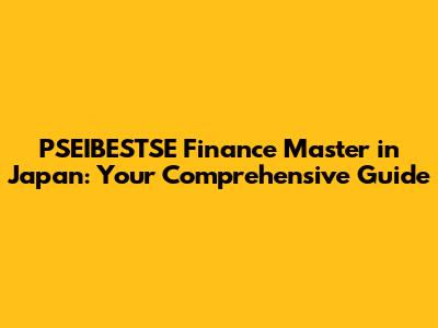 PSEIBESTSE Finance Master In Japan: Your Comprehensive Guide