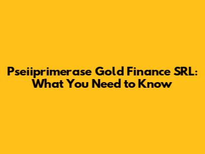Pseiiprimerase Gold Finance SRL: What You Need To Know