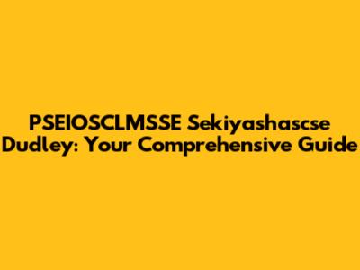 PSEIOSCLMSSE Sekiyashascse Dudley: Your Comprehensive Guide