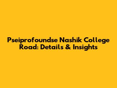 Pseiprofoundse Nashik College Road: Details & Insights