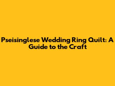 Pseisinglese Wedding Ring Quilt: A Guide To The Craft