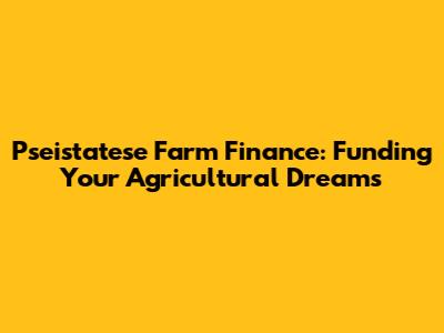 Pseistatese Farm Finance: Funding Your Agricultural Dreams