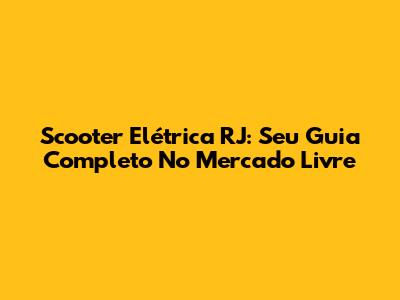 Scooter Elétrica RJ: Seu Guia Completo No Mercado Livre