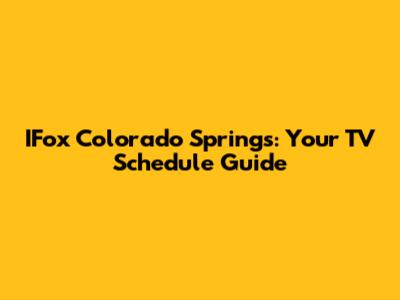 IFox Colorado Springs: Your TV Schedule Guide