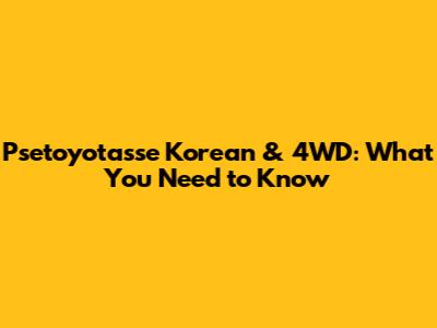 Psetoyotasse Korean & 4WD: What You Need To Know