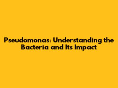Pseudomonas: Understanding The Bacteria And Its Impact
