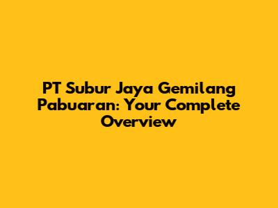 PT Subur Jaya Gemilang Pabuaran: Your Complete Overview