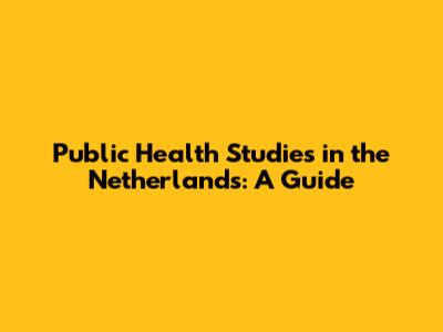 Public Health Studies In The Netherlands: A Guide