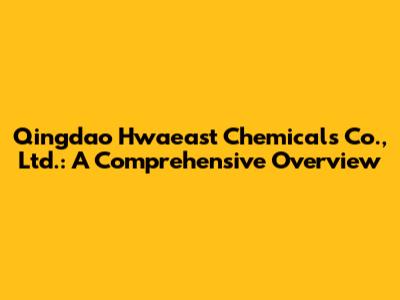 Qingdao Hwaeast Chemicals Co., Ltd.: A Comprehensive Overview