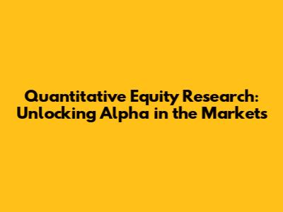 Quantitative Equity Research: Unlocking Alpha In The Markets
