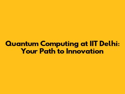 Quantum Computing At IIT Delhi: Your Path To Innovation