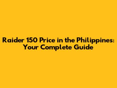 Raider 150 Price In The Philippines: Your Complete Guide