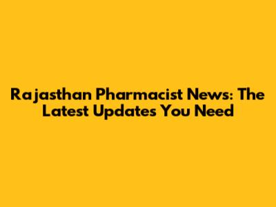 Rajasthan Pharmacist News: Updates And Insights