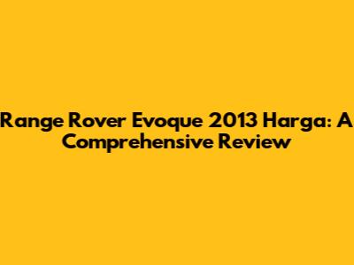 Hey guys! Thinking about snagging a Range Rover Evoque 2013? You're in the right place. Let's dive deep into everything you need to know about the Range Rover Evoque 2013 harga, performance, features, and whether it’s the right ride for you. Buying a car, especially a luxury one like the Evoque, requires careful consideration. The 2013 Range Rover Evoque combines sleek design, impressive performance, and a touch of British luxury, making it a compelling option in the compact SUV market. However, understanding the pricing dynamics and what you get for your money is crucial. This article aims to provide a comprehensive overview, helping you make an informed decision. We'll explore the various factors influencing the price, delve into the car's specifications, discuss its pros and cons, and compare it with its competitors. So, buckle up and let’s get started!