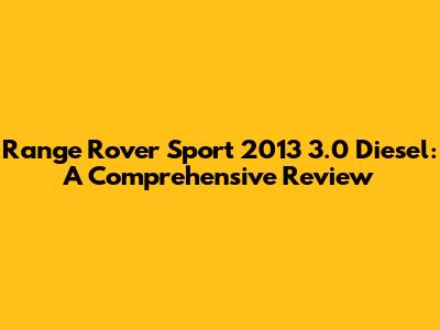 Hey guys! Today, we're diving deep into the Range Rover Sport 2013 3.0 Diesel. This SUV has made a name for itself, blending luxury, performance, and off-road capability. If you're considering getting one or just curious, you're in the right place. We'll cover everything from its engine and performance to its interior, technology, and overall driving experience. Buckle up, because we have a lot to cover!