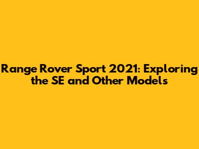 Range Rover Sport 2021: Exploring The SE And Other Models
